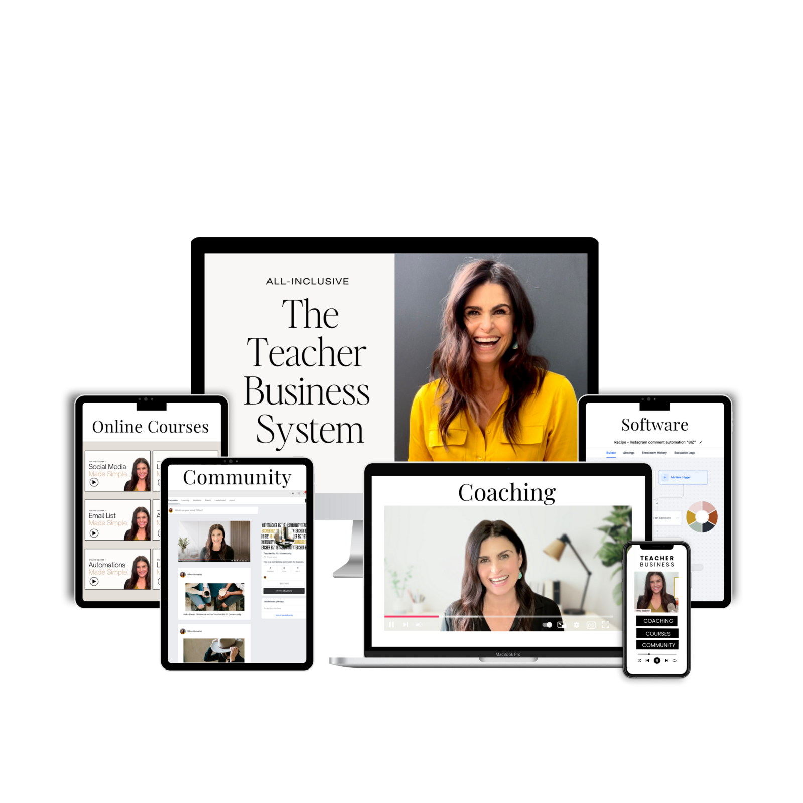 Inside the member portal you'll have access to software, coaching, courses, and the Teacher Business™ community so you have the tools. education, and support you need to automate your sales & marketing, grow your audience, monetize your community, and sell more products & resources.